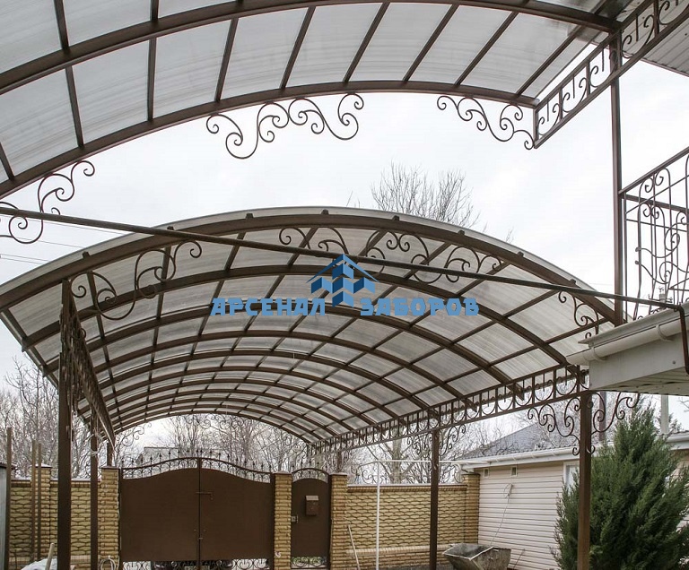 Стандартные характеристики каркаса навеса: столбы 80х80х3мм.