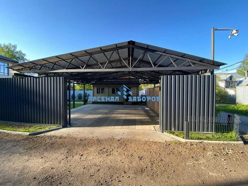 Стандартные характеристики каркаса навеса: столбы 80х80х3мм.